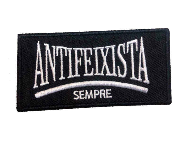 Parche bordado de tela para planchar con la frase Antifeixista Sempre