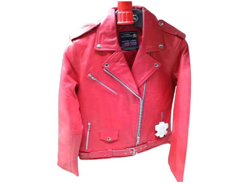 Chaqueta cruzada de color rojo para mujer. Piel de primera calidad