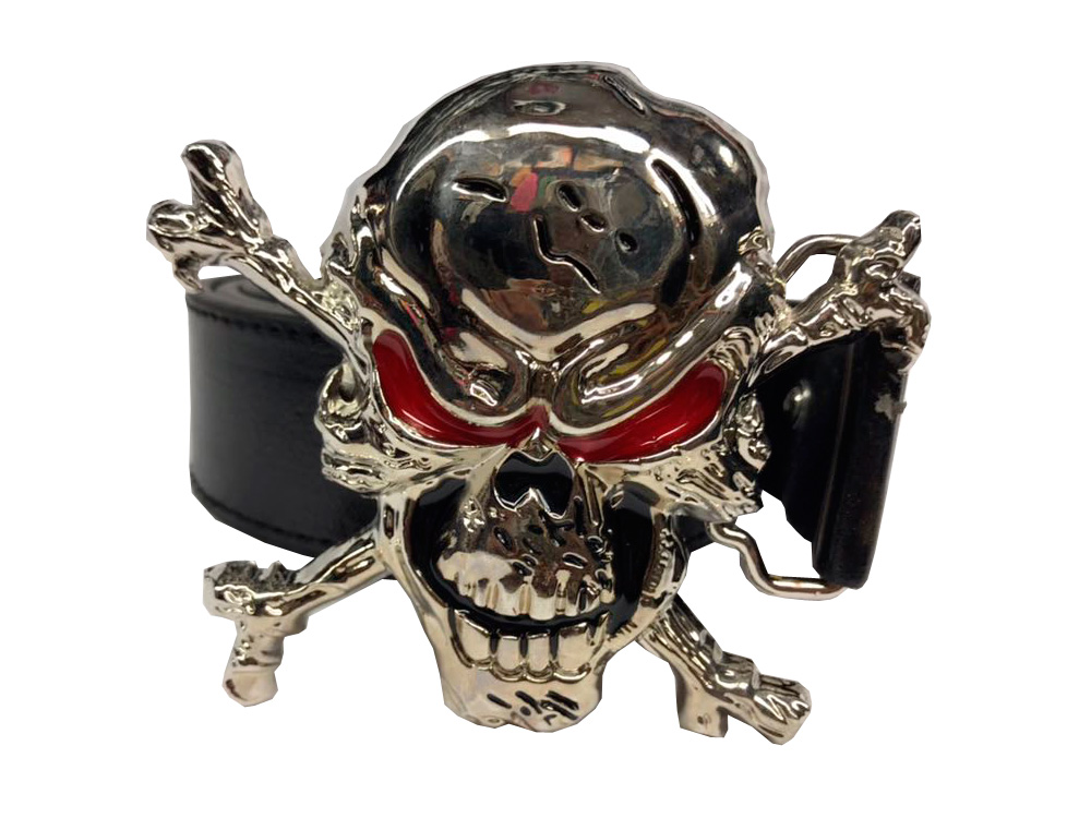 Hebilla Calavera Ojos Rojos de metal con cinturón intercambiable