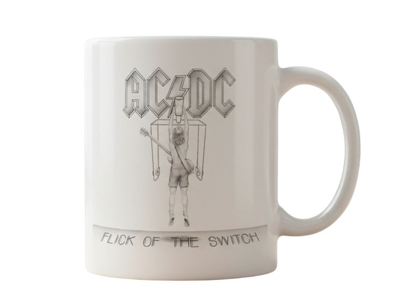 Taza de cerámica del grupo AC/DC Flick of the Switch en color blanco