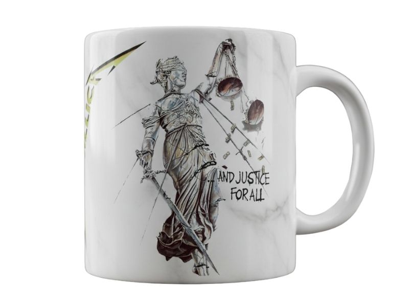 Taza de cerámica blanca efecto mármol del grupo Metallica - And Justice for All